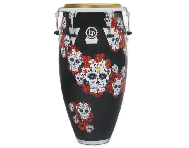 Caractéristiques: Coque en fibre de verre renforcée en Kevlar de 30 pouces Tête en cuir brut de 11 pouces, sélectionnée à la main Jante Comfort Curve II Top-Tuning avec quincaillerie chromée Tiges de tension 5/16" avec protecteurs de coque brevetés LP ProCare Œuvre exclusive Sugar Skull conçue par Karl Perazzo